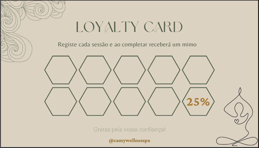 Earn rewards with every visit! Register each session and receive exclusive gifts upon completion. Enjoy our 25% loyalty discount on selected services.